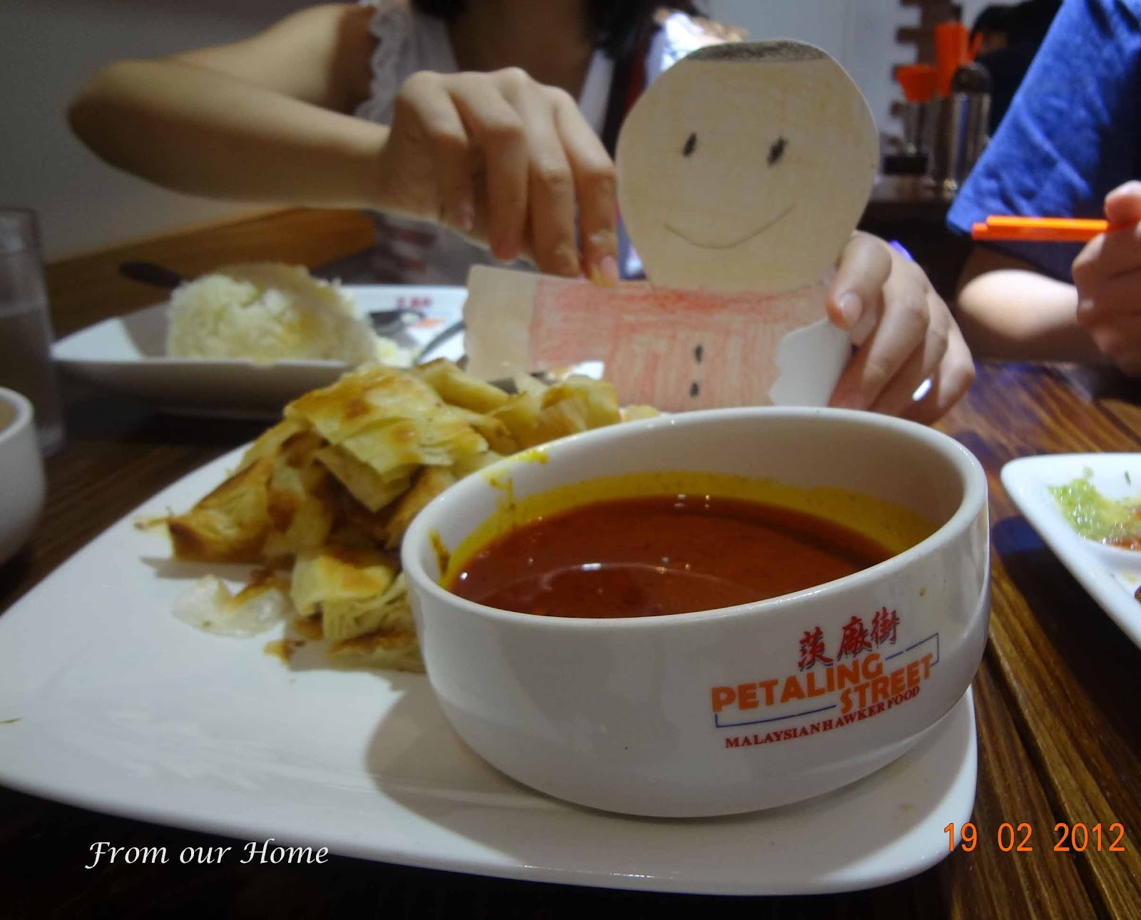 One Sunday we took Flat Stanley for lunch at Petaling St, a Malaysian eatery in Sydney. Flat Stanley had a plain roti canai with curry sauce, which was a bit spicy for him. He cooled down his palate with an icy cold coconut juice.