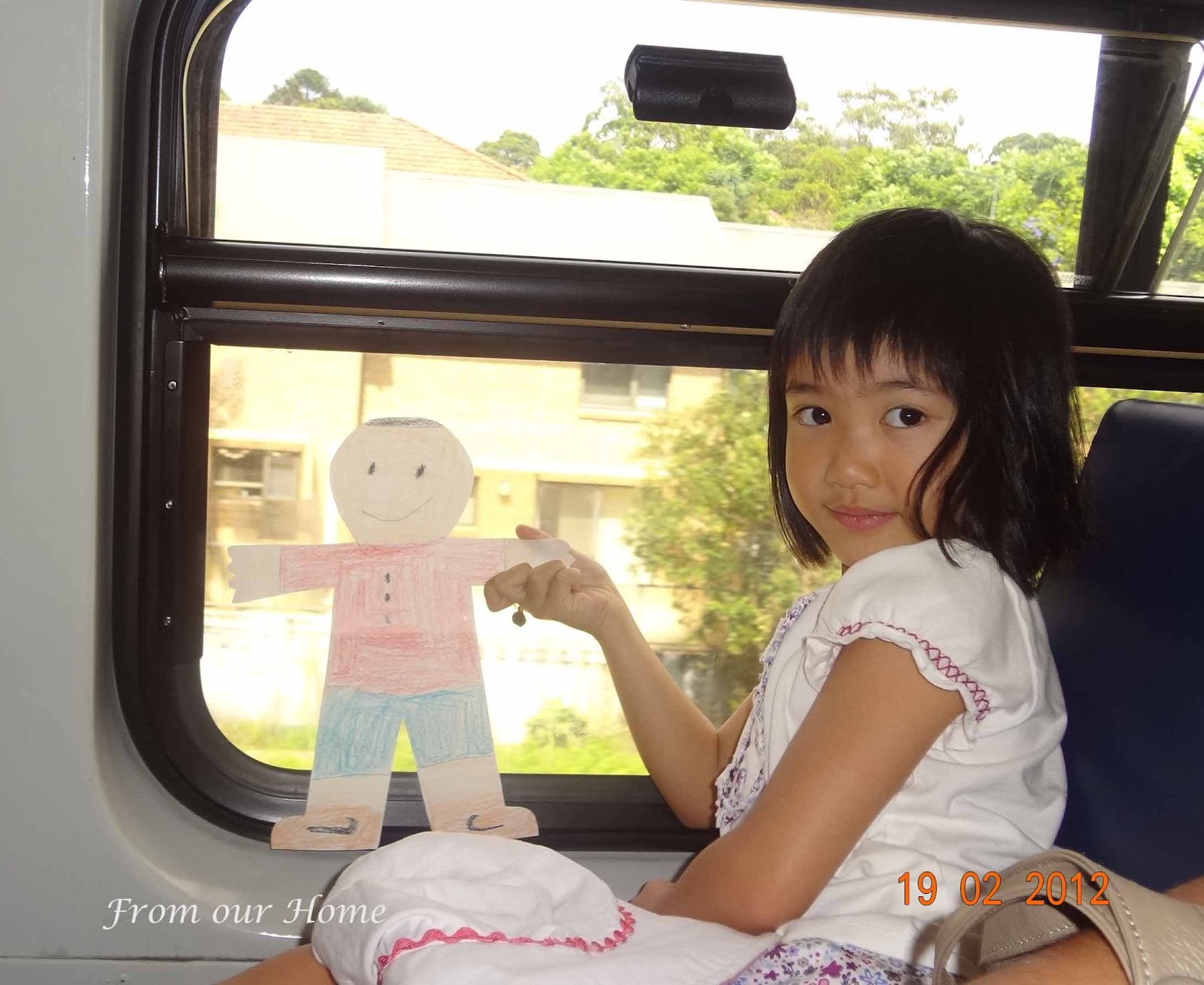Flat Stanley spent about 4 weeks with us. During that time, we took him on a train across the Sydney Harbour Bridge. He also went across the bridge in the car.